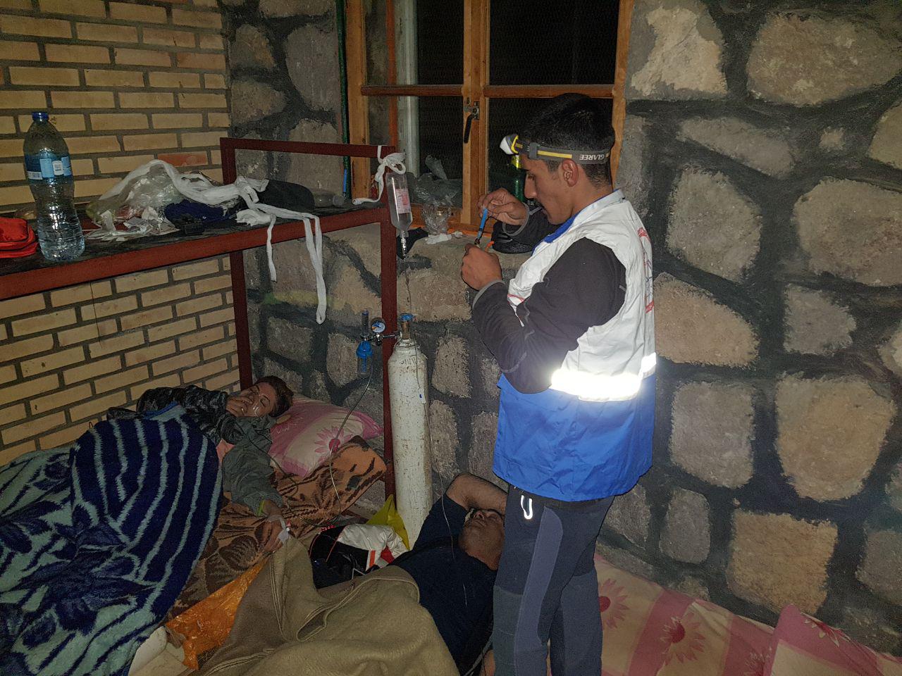 به دلیل برگشتن کوهنوردان تا صبح جمعه مشغول درمان تعدادی از کوهنوردان شدیم