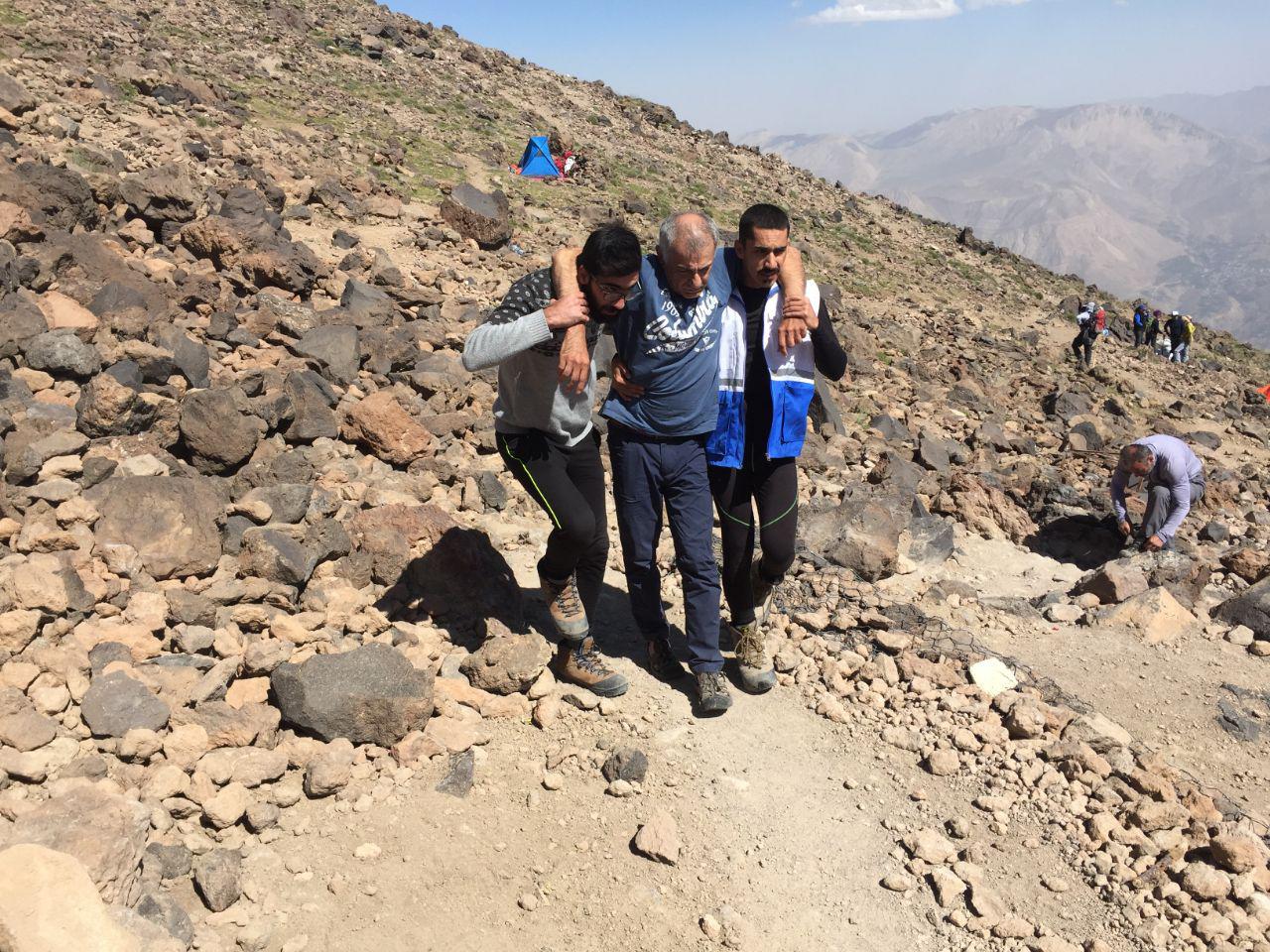 یک کوهنورد از ناحیه پا بر اثر برخورد سنگ مجروح شده بود که اقدامات درمانی بر روی وی انجام شد