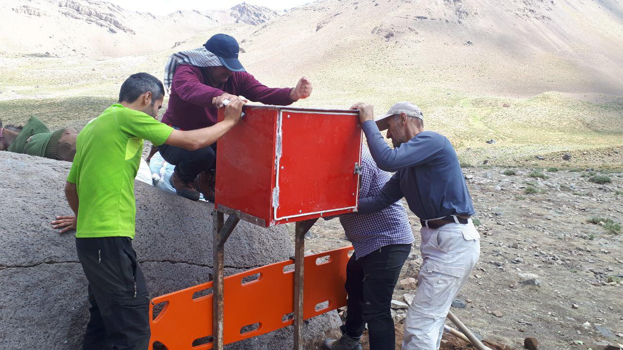 نصب جعبه کمکهای اولیه در منطقه حصارچال توسط کارگروه جستجو و نجات هیات استان مازندران در منطقه حصارچال.