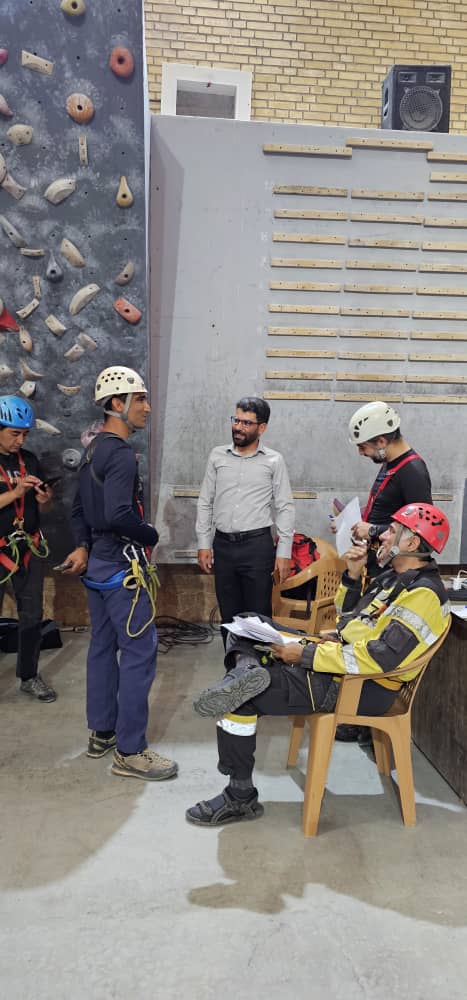، بالاکشی با وزن مخالف و فرود بر روی دیوی ایشن، بسکت کردن مصدوم و آزمون کتبی از شرکت کنندگان اخذ شد