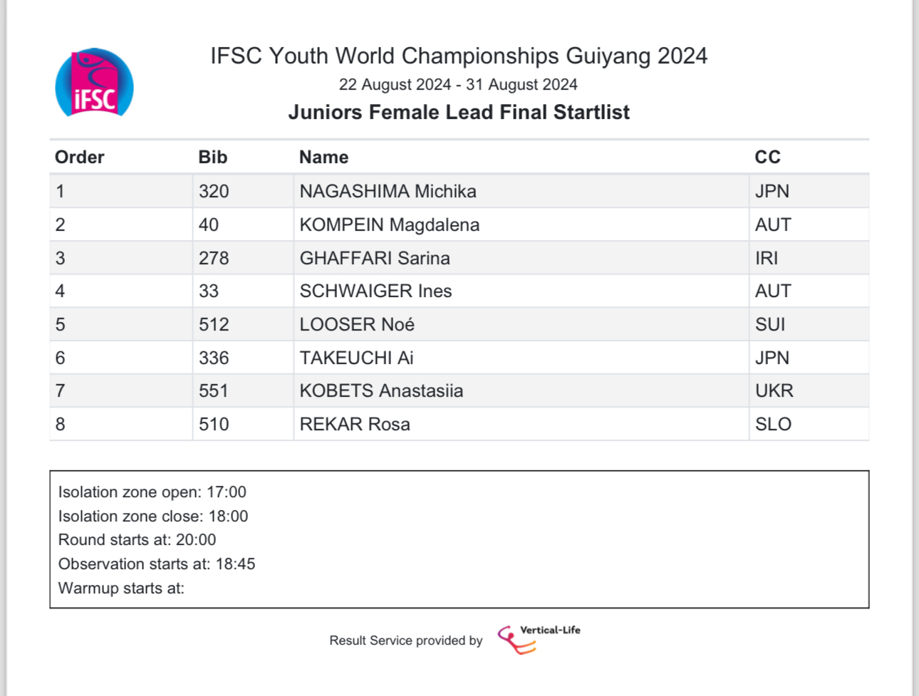 در جریان برگزاری رقابتهای سنگنوردی نوجوانان و جوانان قهرمانی جهان که در شهر «گویانگ» چین جریان دارد، امروز «سارینا غفاری» ملیپوش کشورمان، در ماده «لید» دختران، رده سنی «جوانان» پس از تلاش در مرحله مقدماتی به نیمه نهایی راه یافت.