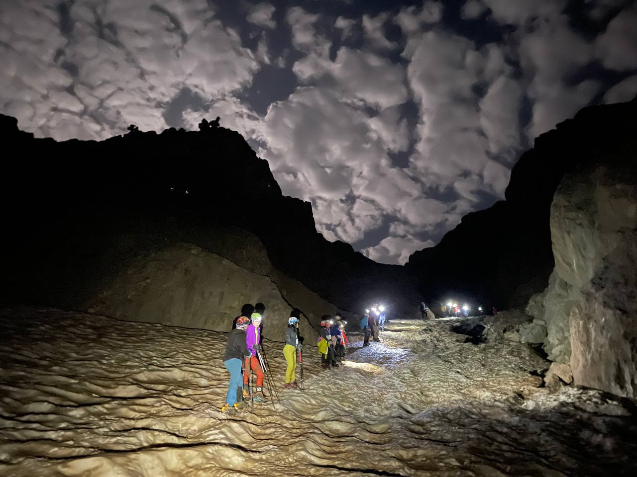 پس از نیمه شب، دو مرحله پیاده روی شبانه در شیبهای تند برفی و دهلیزهای منطقه انجام و افراد مورد تست قرار گرفتند.