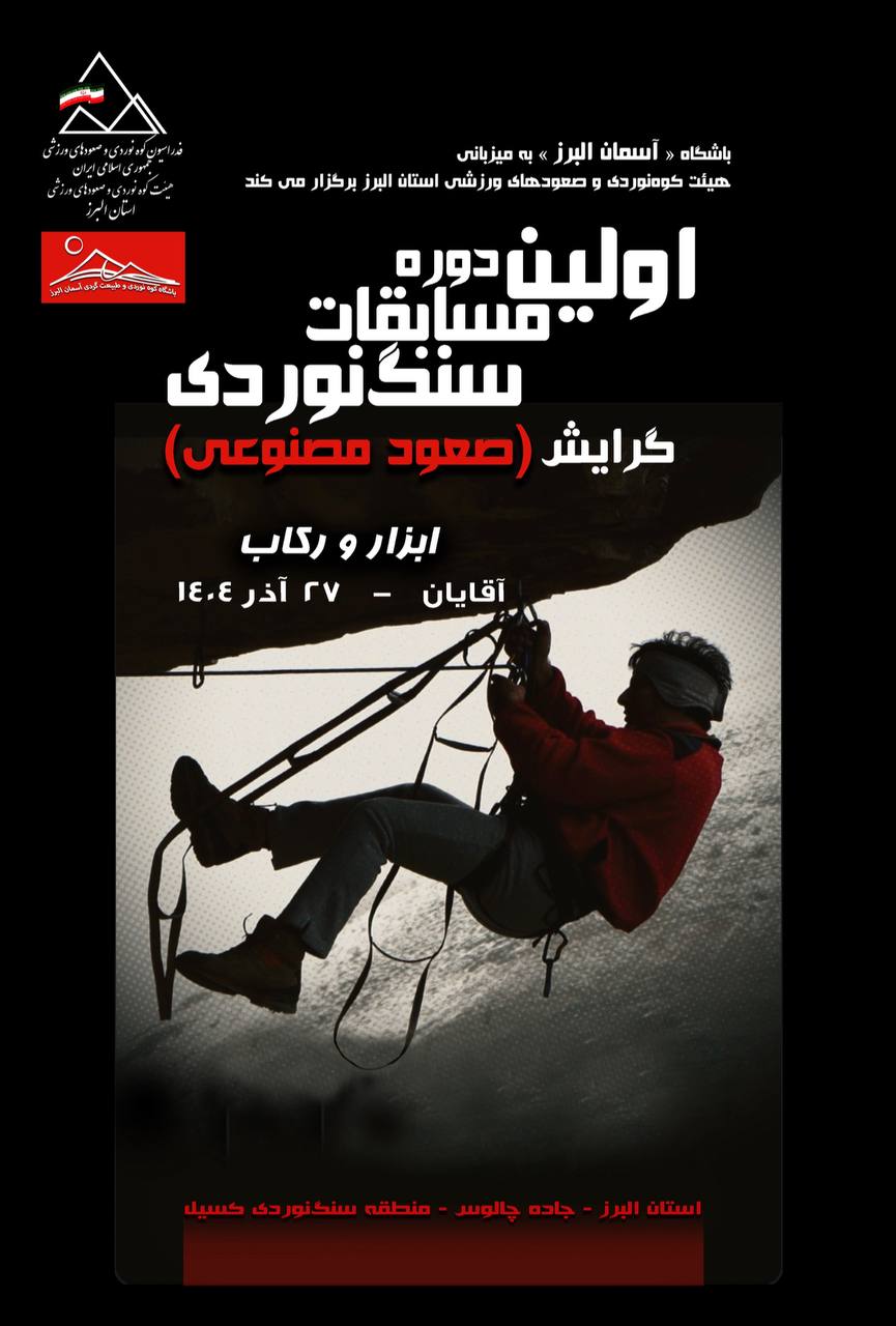 باشگاه «آسمان البرز» به میزبانی هیئت کوهنوردی و صعودهای ورزشی استان «البرز» برگزار میکند: اولین دوره مسابقات سنگنوردی گرایش «صعود مصنوعی»؛ ابزار و رکاب - آقایان - 27 آذر 1404 - استان البرز- جاده چالوس - منطقه سنگنوردی «کسیل»