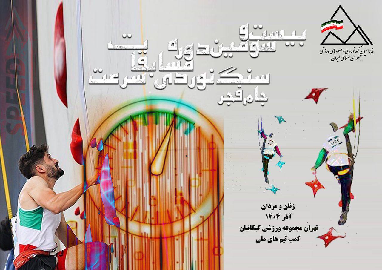 رقابتهای سنگنوردی ماده سرعت جام فجر از 20 و 21 آذر 1404 با حضور ۳۵ ورزشکار پسر و ۱۰ ورزشکار دختر از ۷ استان کشور در کمپ تیمهای ملی سنگنوردی سالن کبکانیان تهران برگزار شد.