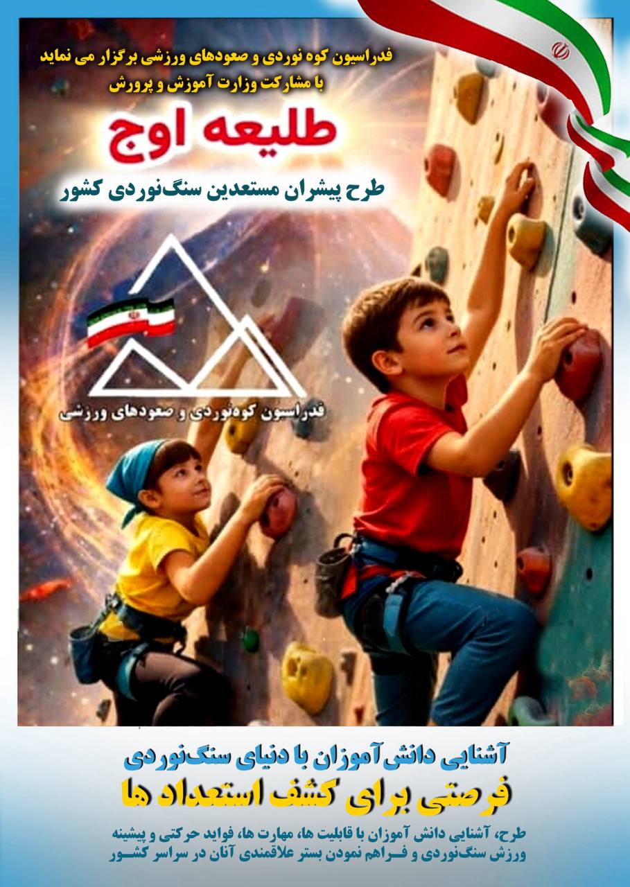نظر به تقویت بُعد قهرمانی و مدالآوری رشته صعودهای ورزشی و با توجه به سابقه مبرهن و قابل قبول این رشته در سالهای اخیر که مرهون تلاشهای ارزشمند اهالی فن بوده و با استقبال گسترده علاقهمندان همراه شده است، این فدراسیون در راستای ارتقای جایگاه این رشته و پیرو تفاهمنامههای منعقده فیمابین وزارت ورزش و جوانان و وزارت آموزش و پرورش، در نظر دارد طرح «پیشران مستعدین سنگنوردی کشور» با شعار «طلیعه اوج» را اجرا نماید.