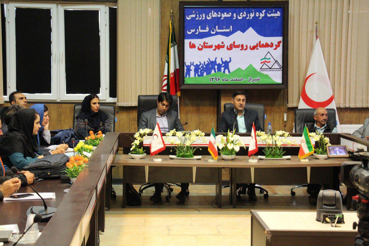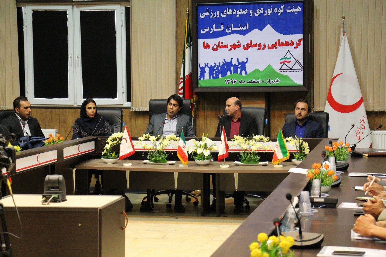 نشست روسای هیئت کوه نوردی و صعودهای ورزشی شهرستان های فارس با حضور رئیس هیئت استان و مدیرعامل جمعیت هلال احمر فارس و جمعی از کوه نوردان و مسئولان گروه ها برگزار شد .