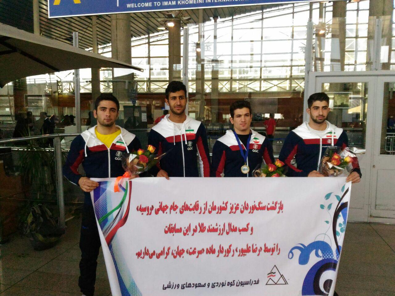 بازگشت سنگنوردان کشورمان از مسابقات جام جهانی «روسیه» و استقبال از آنان در فرودگاه امام (ره) / تقدیر فدراسیون از «رضاعلیپور» در بدو ورود