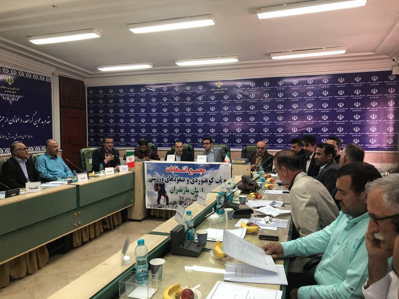 مجمع انتخابی هیئت کوه‌نوردی و صعودهای ورزشی استان مازندران دوشنبه 28 خرداد 97 درمحل سالن جلسات اداره ورزش استان با حضور «حبیب حسین زادگان» مدیر کل ورزش و جوانان استان، معاونین و کارشناسان آن اداره، «عالیشا» سرپرست هیئت استان، «همایون بختیاری» نایب رئیس فدراسیون، «آسیابان» مسئول کمیته امور استان‌های فدراسیون و سایر اعضای مجمع جهت انتخاب رئیس هیئت با  هفت نفر نامزد به نام‌های «علی‌اصغر معلم کلایی»، «سید محمد انصار الحسینیی»، «حمید کاکوئی»، «محمود محسنی»، «محمد گنجی»، «هادی مستانی» و خانم «بهار قبادی» برگزار شد.
