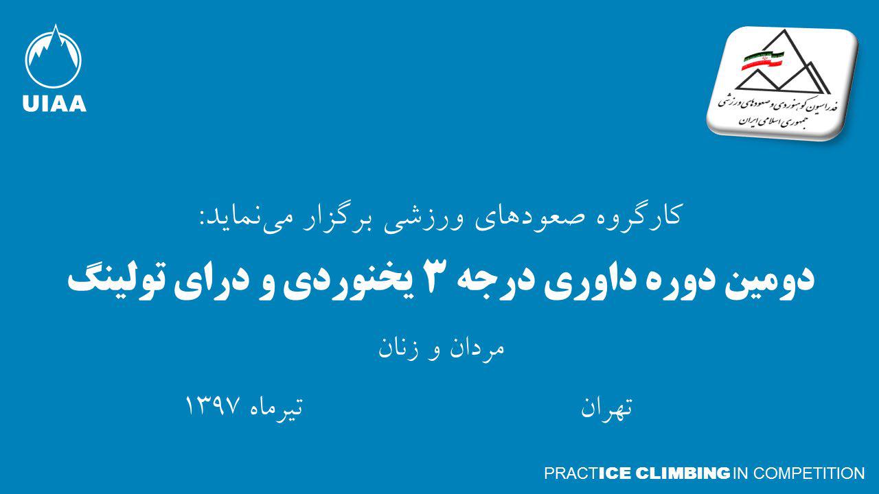 دومین دوره داوری درجه سه یخنوردی از صبح امروز ۱۴ تیرماه ۱۳۹۷ در محل فدراسیون کوهنوردی و صعودهای ورزشی برگزار شد.از موارد شایان ذکر بازدید سرکار خانم گرجی نایب رییس بخش بانوان فدراسیون از روند برگزاری کلاس بود.