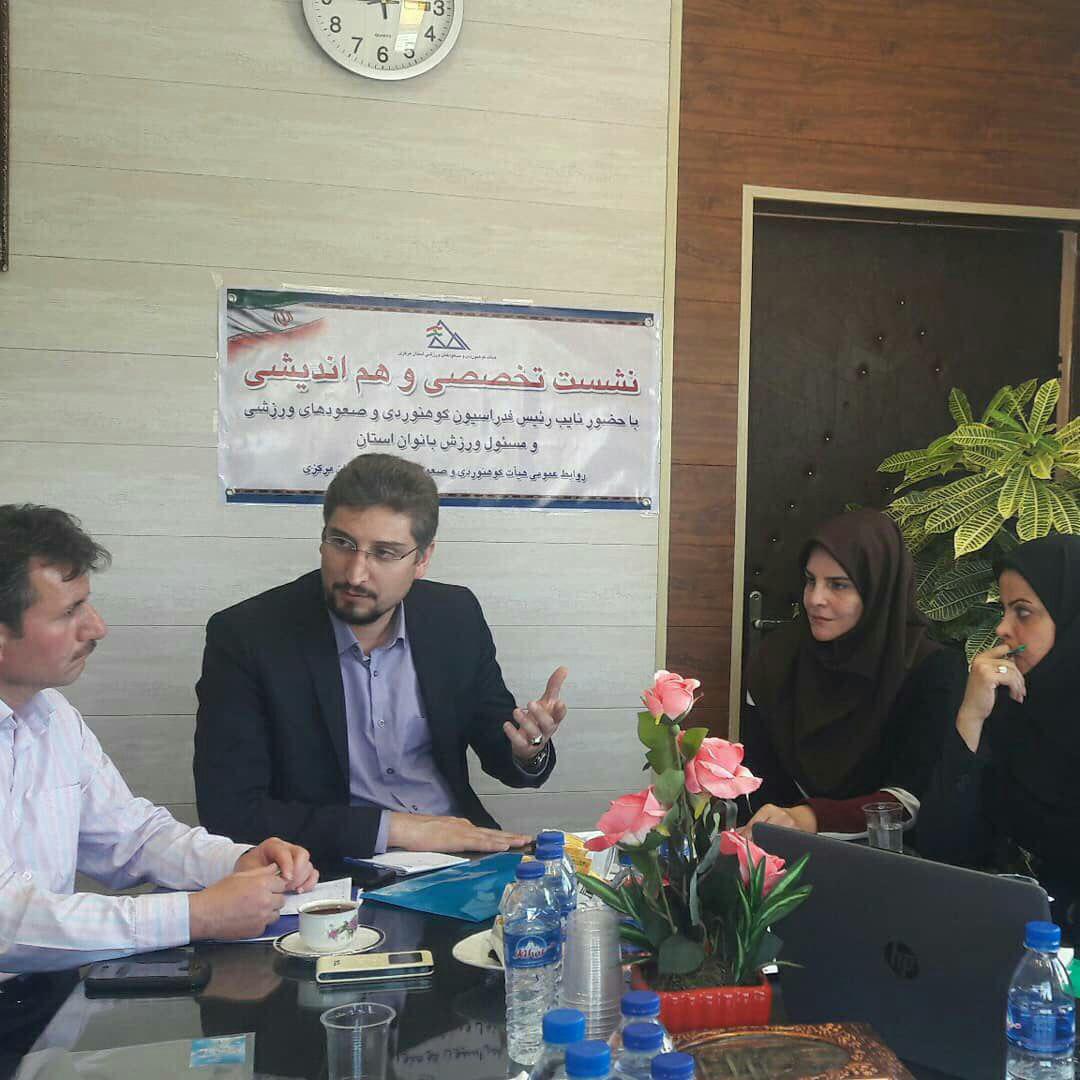نشست تخصصی و هم اندیشی، «منصوره گرجی» نائب رئیس فدراسیون کوه‌نوردی و صعودهای ورزشی با «حقدادی» مدیر کل اداره ورزش وجوانان ، «بخشی» نائب رئیس بانوان و همچنین «رضایی» رئیس هیئت کوه‌نوردی و صعودهای ورزشی استان مرکزی، «عسگری» نائب رئیس بانوان هیئت ونیز مسئولین ورزشی استان مرکزی در ۲۱ تیر ۱۳۹۷ در محل اداره کل ورزش و جوانان استان مرکزی برگزار گردید.