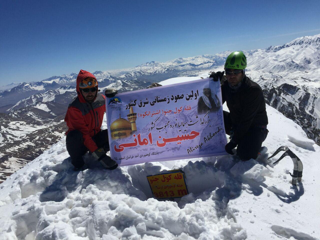 اعضای هیئت کوهنوردی و صعودهای ورزشی استان لرستان موفق شدند قله 3800 متری کول جنو اشترانکوه را در تاریخ بیستم اسفند نود و پنج جهت بزرگداشت مرحوم ناصر خوشه چین کوهنورد و مربی فقید استان مرکزی و پاسداشت زحمات حسین امانی مربی زحمتکش استان خراسان رضوی اجرا و صعود نماید.