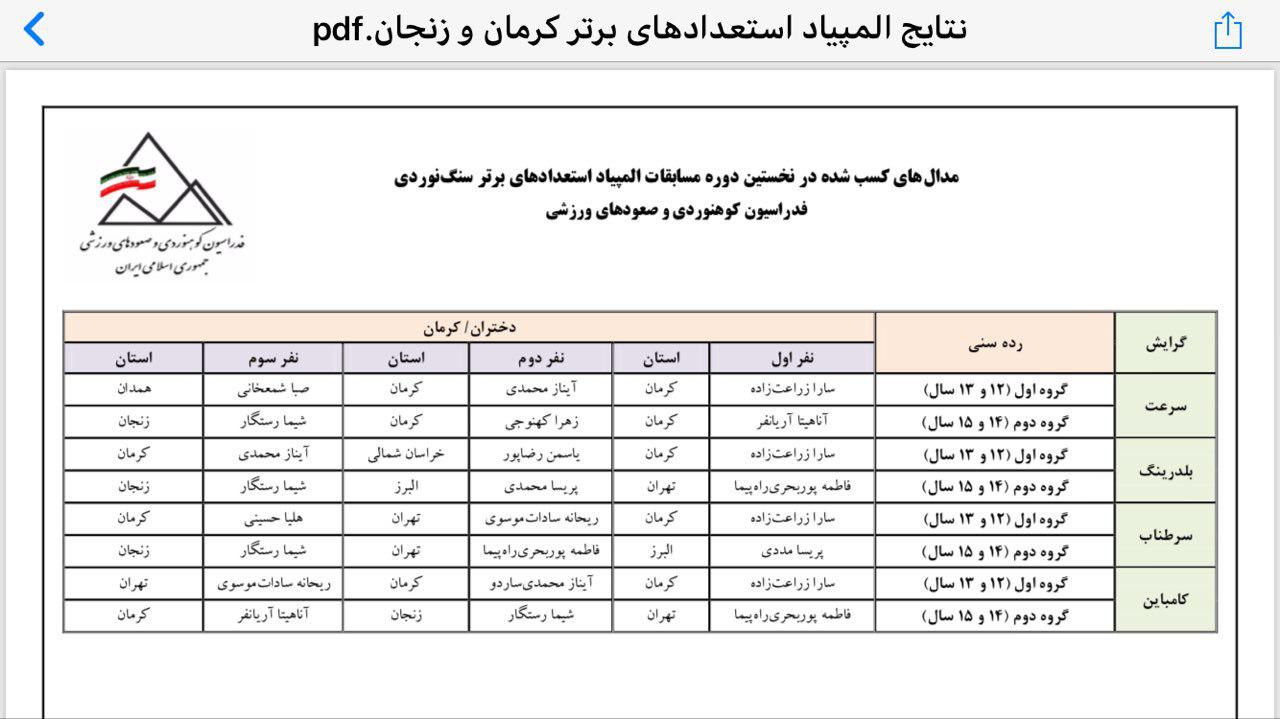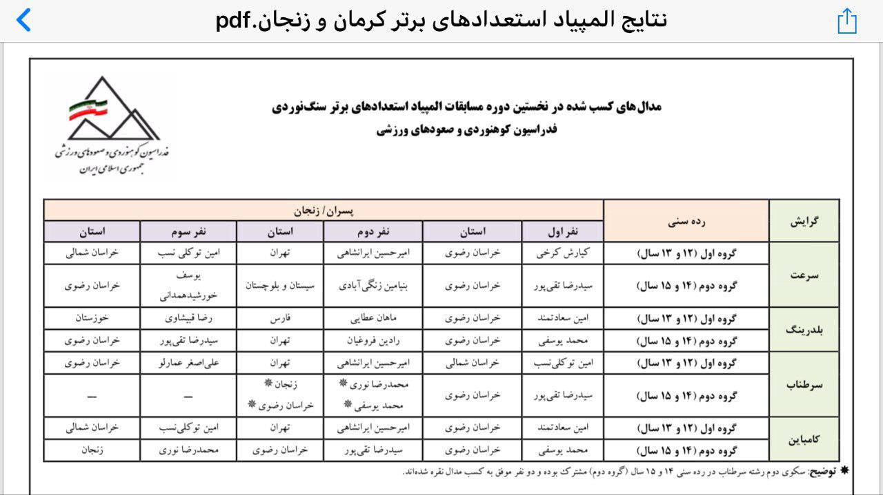 جمع بندی کلیه نتایج و مدال های کسب شده در اولین المپیاد استعدادهای برتر سنگنوردی.