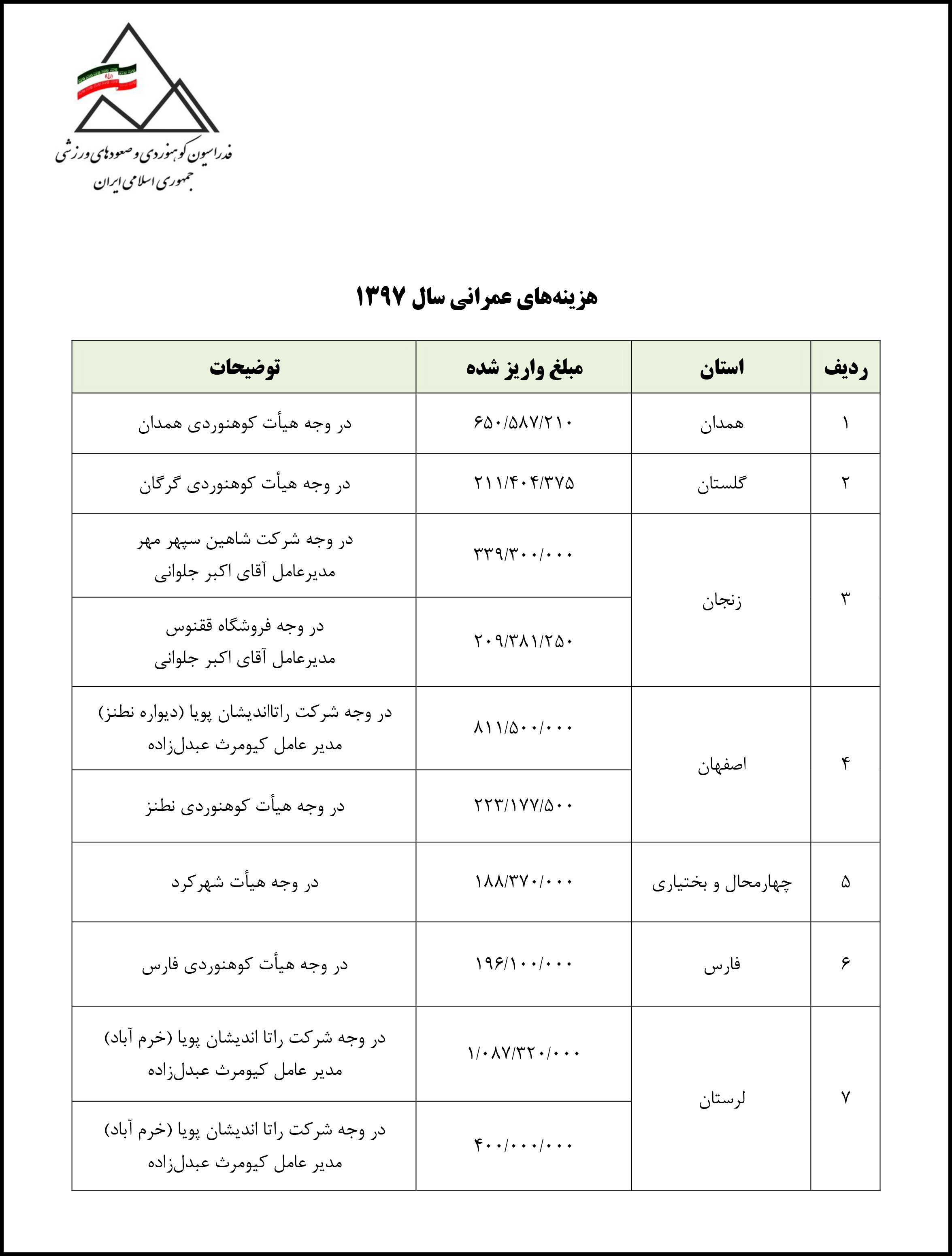 تغییر محل برگزاری دوره بازآموزی مربیگری درجه ۳ کوهنوردی با اسکی