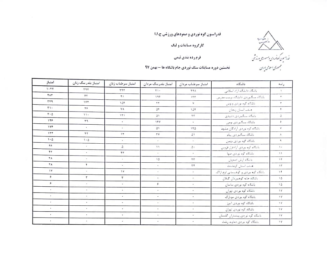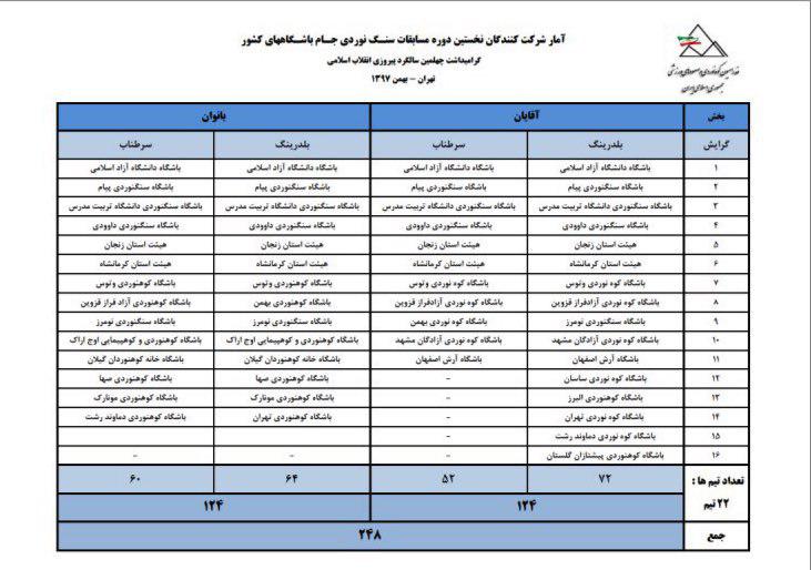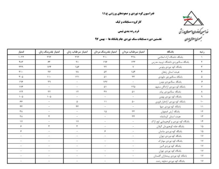 نتایج تیمی و آمار شرکت کنندگان و باشگاههای حاضر نخستین دوره مسابقات سنگنوردی باشگاههای کشور