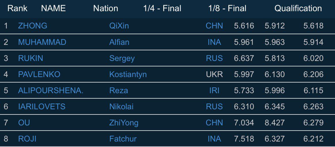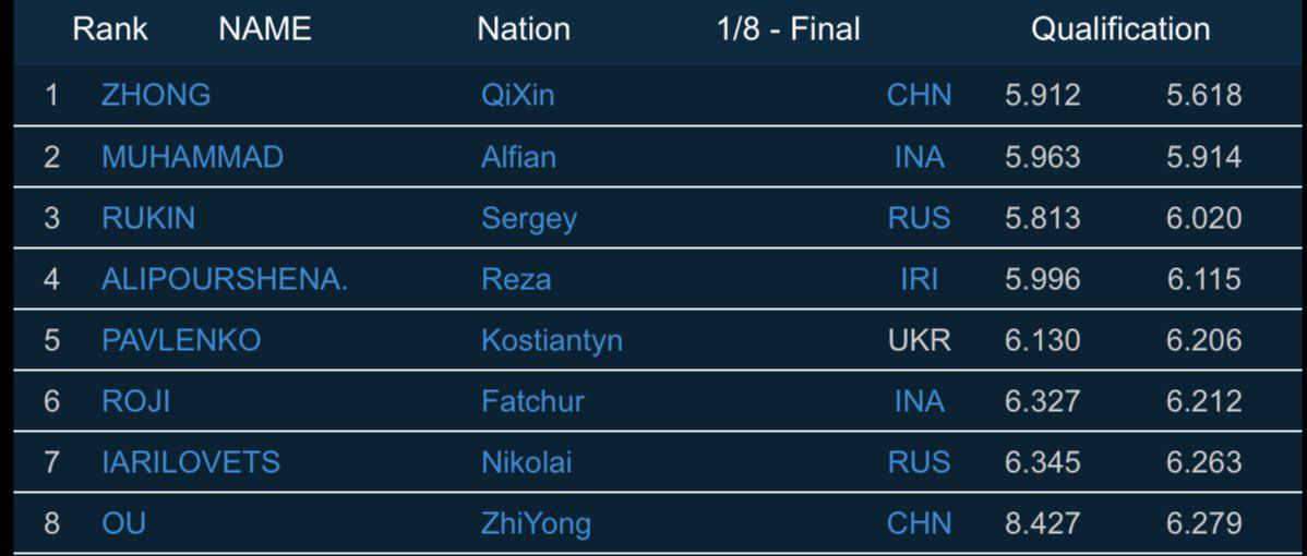 جمله ایران حضور داشتند که «رضا علیپور» نفر دوم رنکینگ جامهای جهانی ۲۰۱۸ و نفر هفتم مرحله نخست ماده سرعت در