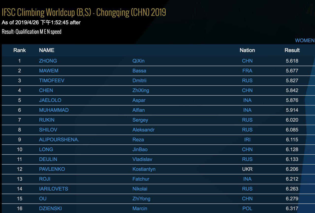 از جامهای جهانی سنگنوردی در ماده «بولدرینگ» و دومین مرحله ماده «سرعت» به مدت
