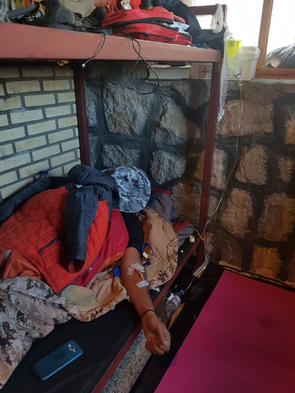 از ادامه درمان صرف نظر کرد و با رضایت شخصی با استفاده از قاطر به سمت کمپ دوم