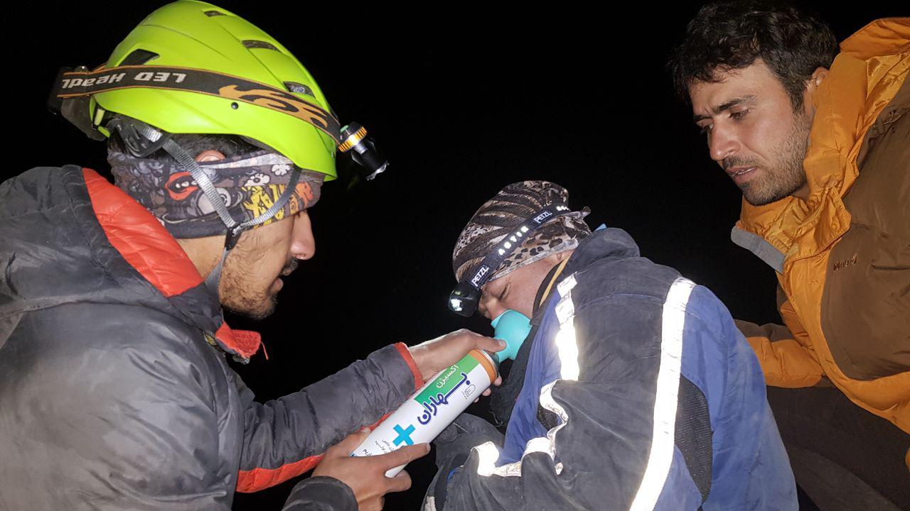 ارتفاع ۳۷۰۰ دچار تپش قلب و کبودی شده بلافاصله اعضای ستاد به سمت وی حرکت کرد