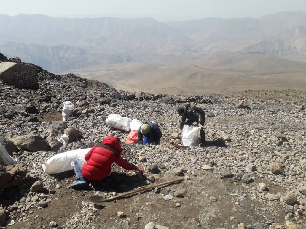گزارش تصویری/ جمع آوری زباله های محوطه بارگاه سوم توسط عوامل کارگروه حفظ محیط کوهستان ۱۰ و ۱۱ شهریور