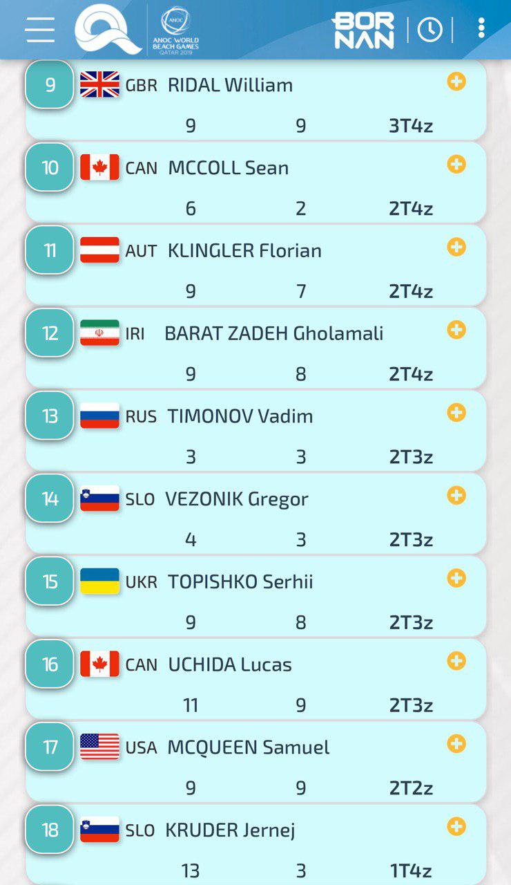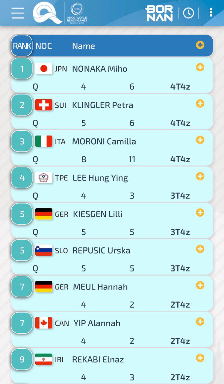 در پایان مسابقات سنگنوردی نخستین دوره بازیهای جهانی ساحلی در بخش زنان، «الناز رکابی» با کسب دو امتیاز تاپ و ۴ امتیاز bonus در جایگاه نهم ایستاد و از راهیابی به مرحله پایانی بازماند.