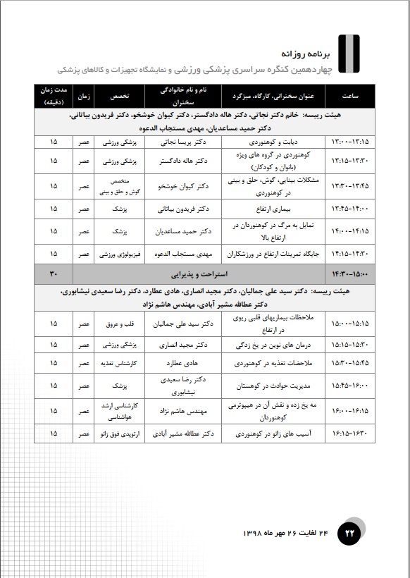 برگزاری چهاردهمین کنگره پزشکی ورزشی با مشارکت دانشگاه علوم پزشکی ایران، کار گروه پزشکی کوهستان و کار گروه امداد و نجات فدراسیون کوه نوردی و صعودهای ورزشی.