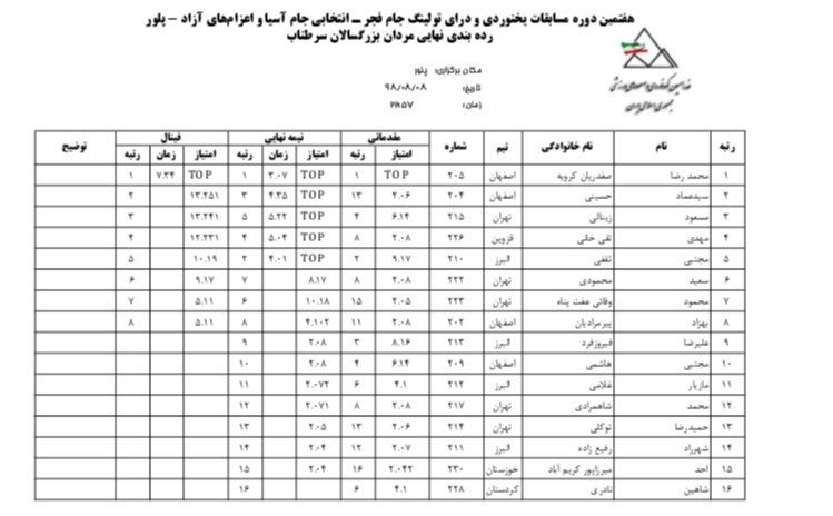 🔵نفرات برتر هفتمین دوره مسابقات درآیتولینگ جام فجر - مردان - ماده کمبایند/ رده سنی بزرگسالان: