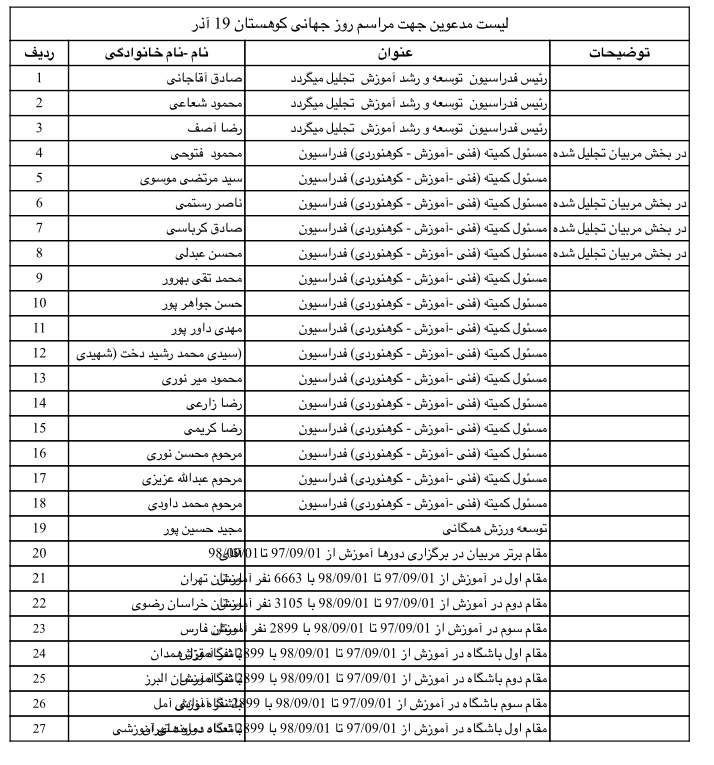 - معرفی و تقدیر از مسئولین اسبق کمیته‌های فنی، آموزش و کوه‌نوردی