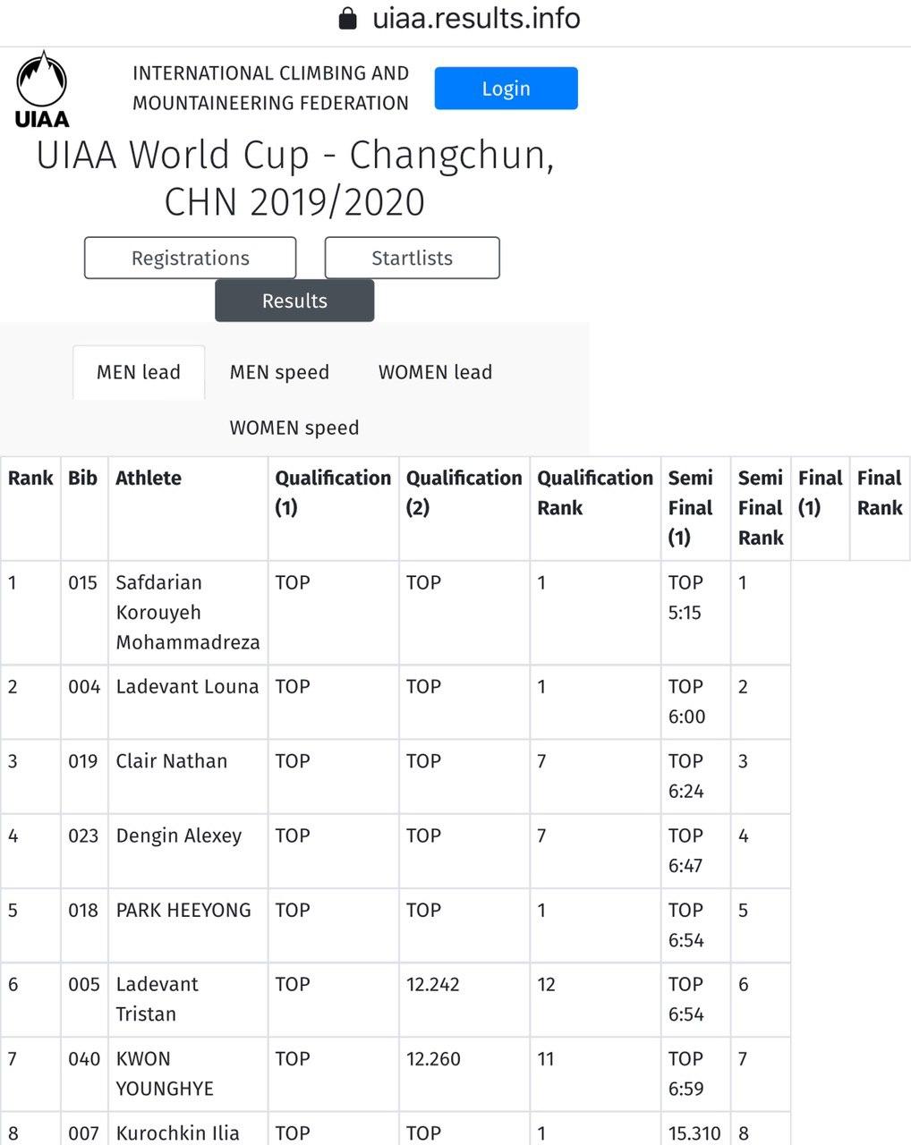 «محمد رضا صفدریان» سنگ نورد خوب کشورمان در اولین دوره مسابقات جام جهانی یخ نوردی سال
