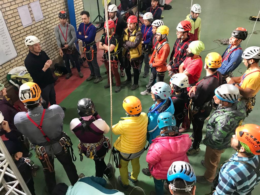 مباحث آموزشى در سطح پيشرفته شامل نجات مصدوم در شرايط مختلف (عبور از گره. عبور از re belay، عبور از deviation انتقال از طناب به طناب Hanging hall ) و مباحث تئورى آموزش داده شد.