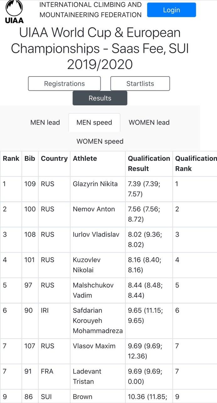 نتایج «محمدرضا صفدریان» در مسابقات جام‌جهانی یخ‌نوردی در «ساس‌فی» سوئیس/ به روز می شود ...