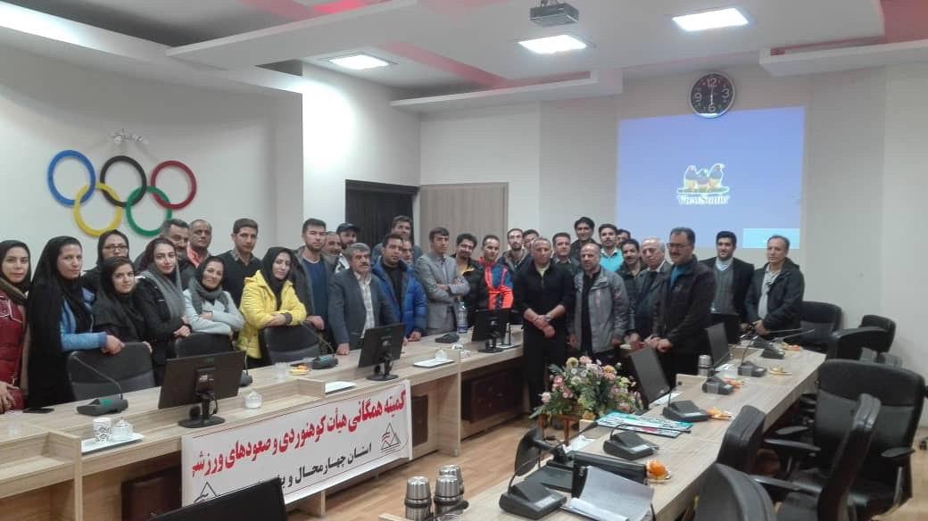 در راستای برگزاری دوره های آموزش کوهپیمایی همگانی سراسر کشور روز پنج شنبه ۳ بهمن ماه جلسه ای در سالن کنفرانس اداره کل ورزش و جوانان استان چهارمحال و بختیاری با حضور  آقای بهمنی رئیس هیئت کوهنوردی و صعودهای ورزشی استان چهار محال و بختیاری، مجید حسین پور رئیس کمیته همگانی فدراسیون، آقای رضا ایاز مسئول بخش روابط عمومی کمیته همگانی فدراسیون، آقای شاهقلی رئیس کمیته همگانی استان و رئیس هیئت‌های تابعه استان مسئولین و نمایندگان   باشگاه‌ها وکمیته های همگانی وآموزش استان و شهرستان ها برگزار گردید.