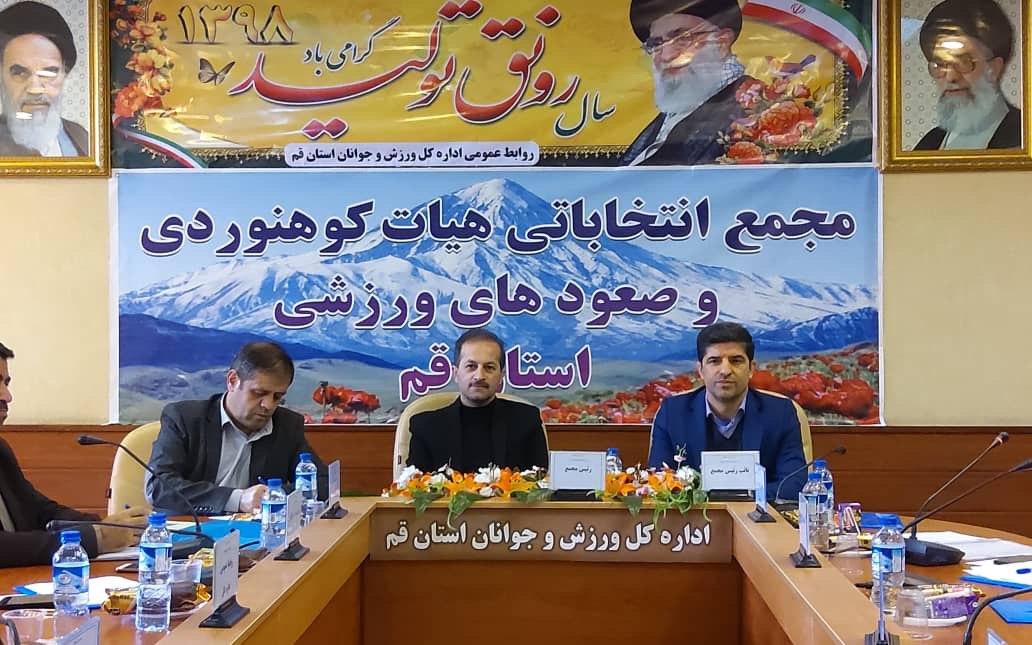 مجمع انتخابی هیئت  کوه‌نوردی و صعودهای ورزشی استان «قم» امروز   یکشنبه 6 بهمن 1398 با حضور «رسول منعم» مدیر کل، معاون اداره ورزش و جوانان، کارشناسان ورزشی، مجامع و مسئولین حراست، روابط عمومی اداره ورزش وجوانان استان، حمیدمردای سرپرست هیئت، «رضا زارعی» رئیس فدراسیون، «حمیدآسیابان» مسئول کمیته امور استانها و سایر اعضای مجمع جهت انتخاب رئیس هیئت با حضور ۲ نامزد؛ «حسن وفا»، «مسعود جوادی» برگزار شد.