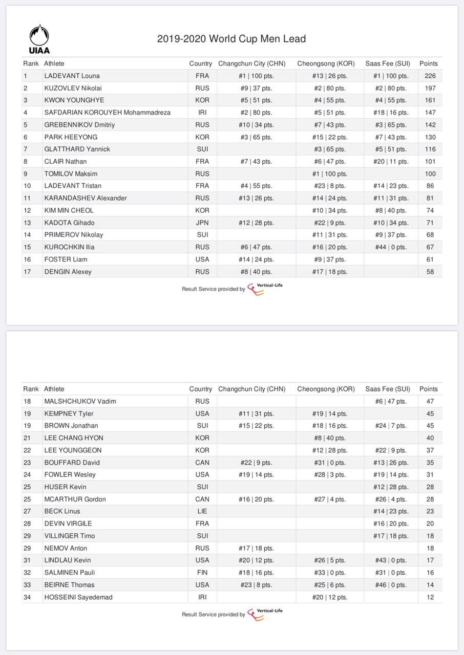 پایان رقابت‌های جام‌های جهانی یخ‌نوردی ۲۰۲۰ ؛ «محمدرضا صفدریان» در رتبه چهارم رنکینگ ۲۰۲۰ایستاد ...