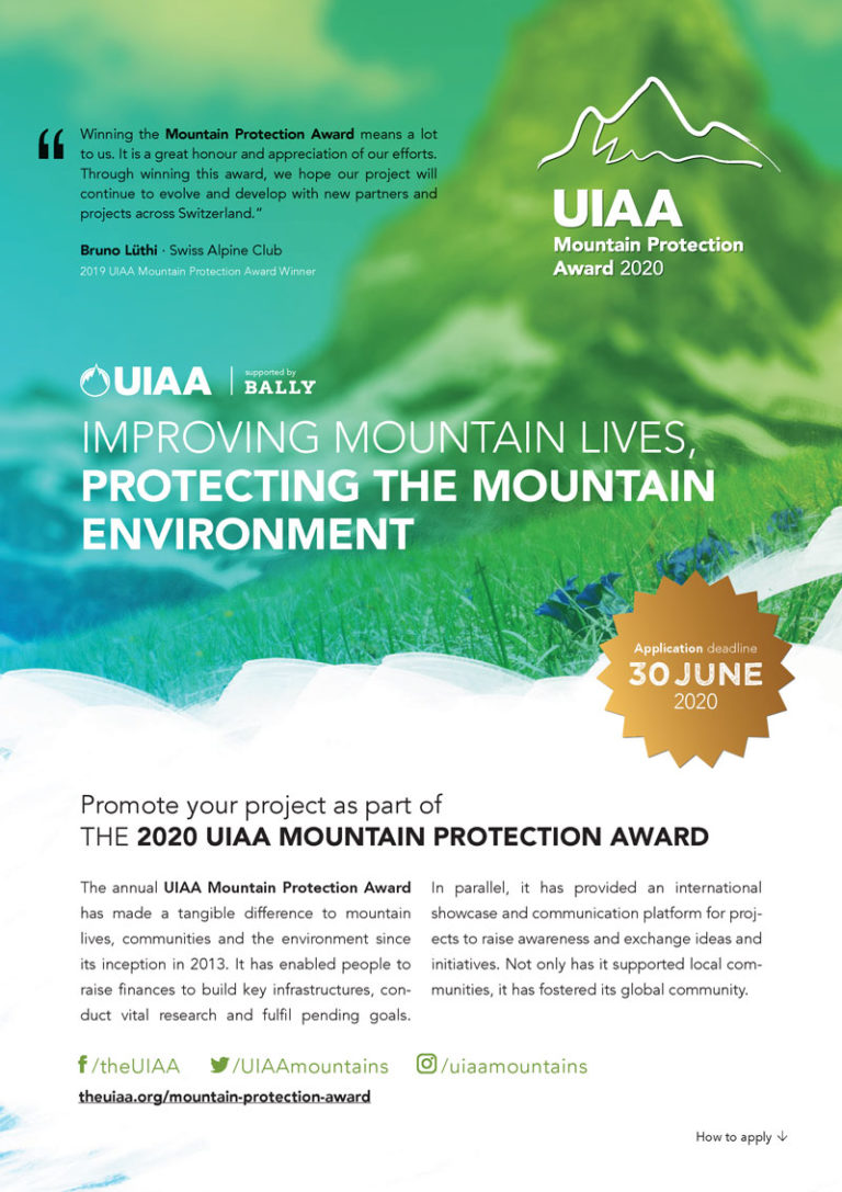 از سال 2013 جایزه سالانه حفظ محیط کوهستان اتحادیه بین المللی کوهنوردی، تفاوت آشکاری را در جوامع ، زندگی و محیط زیست کوهستان ها ایجاد کرده است و با ارائه کمک های مالی مردم را به ایجاد زیربناهای کلیدی، انجام تحقیقات حیاتی و مهم و واقعیت بخشیدن به اهداف بالقوه قادر ساخته است. MPA همچنین یک بستر ارتباط بین المللی برای پروژه ها به جهت بالا بردن آگاهی و رد و بدل کردن ایده ها و نوآوری ها بوجود آورده است که نه تنها جوامع محلی را پشتیبانی می کند بلکه پرورش دهنده