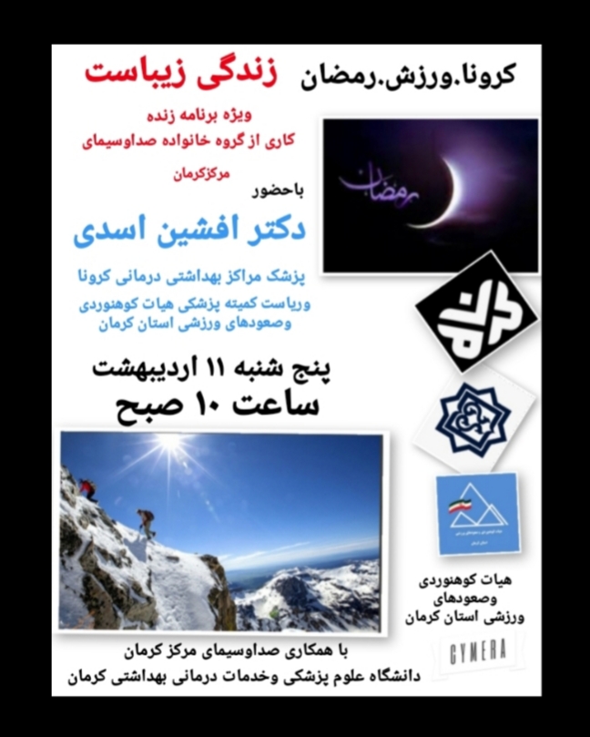 از گروه خانواده سیمای مرکز کرمان با موضوع ورزش، کرونا، رمضان همچنین تهیه و تخصیص ماسک تایید شده توسط
