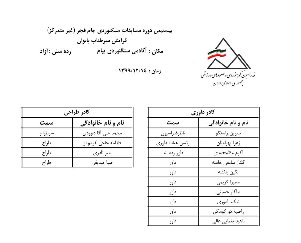 اسامی پذیرفته ‌شدگان دوره‌ مربیگری درجه ۳ یخ نوردی و درای تولینگ