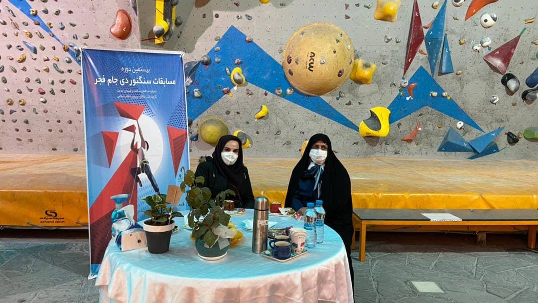حضور دکتر «مهین فرهادی زاد» معاون توسعه ورزش بانوان وزارت ورزش و جوانان و «منصوره گرجی» نایب رئیس فدراسیون کوه‌نوردی و صعودهای ورزشی در فینال بیستمین دوره مسابقات «بلدرینگ» جام فجر بانوان/ مجموعه سنگ‌نوردی «پیام»