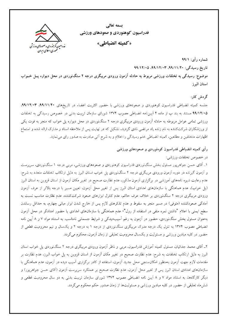 اعلام رأی «کمیته انضباطی فدراسیون» درخصوص خاطیان حادثه منجر به فوت