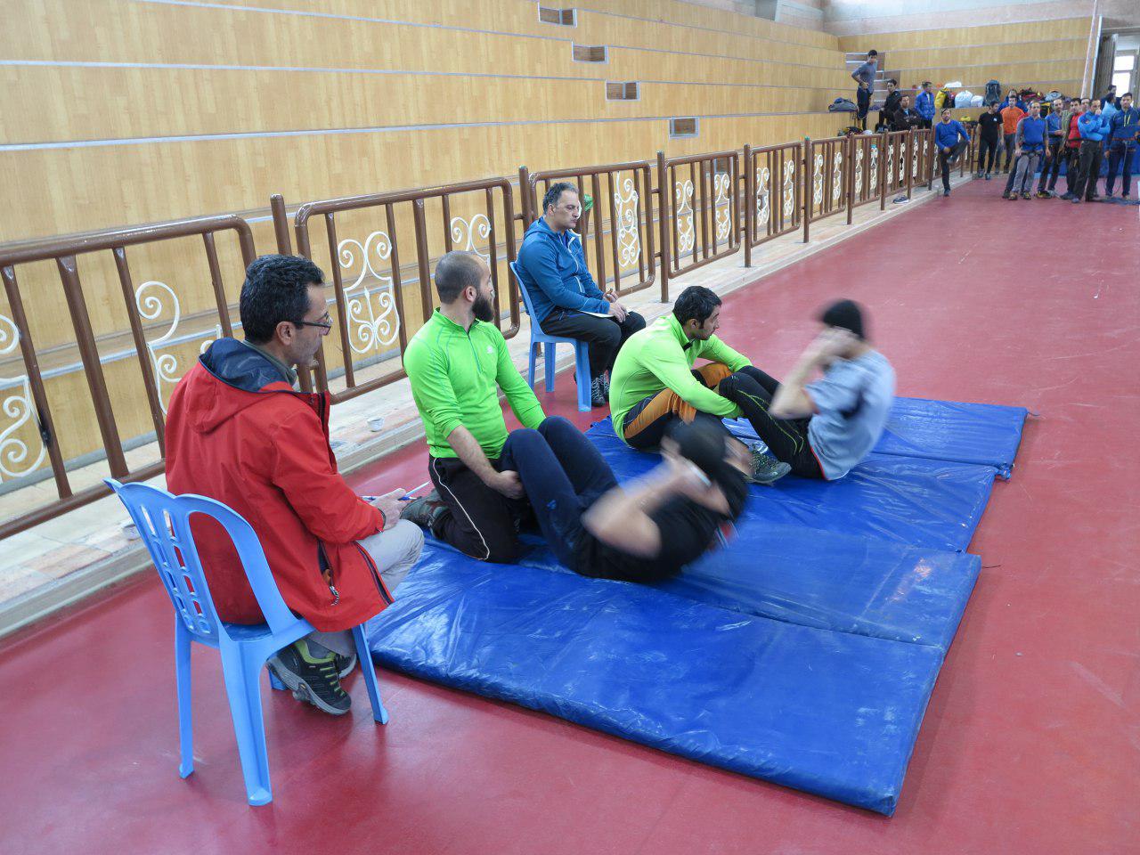 در ابتدا ، پس از چک کردن لوازم فنی ، آزمون صعود و حمایت روی دیواره سالن و سپس آزمون گره و انواع کارگاه های کار با طناب انجام شد. پس از صرف نهار ، آزمون کتبی به عمل آمد و در نهایت آزمون نجات مصدوم در حالت فرود به عمل آمد و ساعت 6 بعد از ظهر به پایان رسید. صبح روز بعد و در ادامه آزمون ، راس ساعت 8 صبح ابتدا آزمون نجات مصدوم در حالت صعود و سپس آزمون های عبور از گره ، DEVIATIONS و REBELAY با در نظر گرفتن زمان انجام شد و نهایتا ساعت 15.00 روز جمعه 29/بهمن/95 اختتامیه و پایان دوره اعلام گردید.