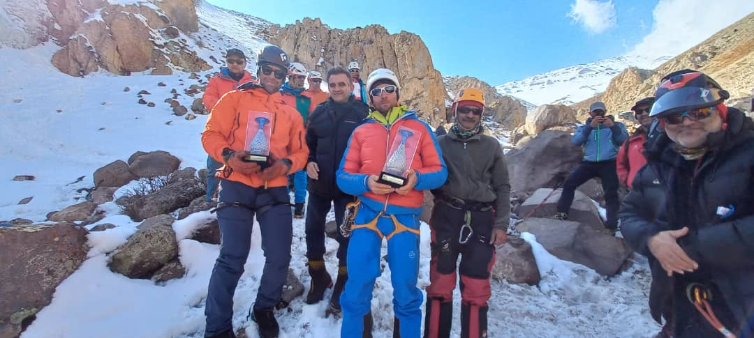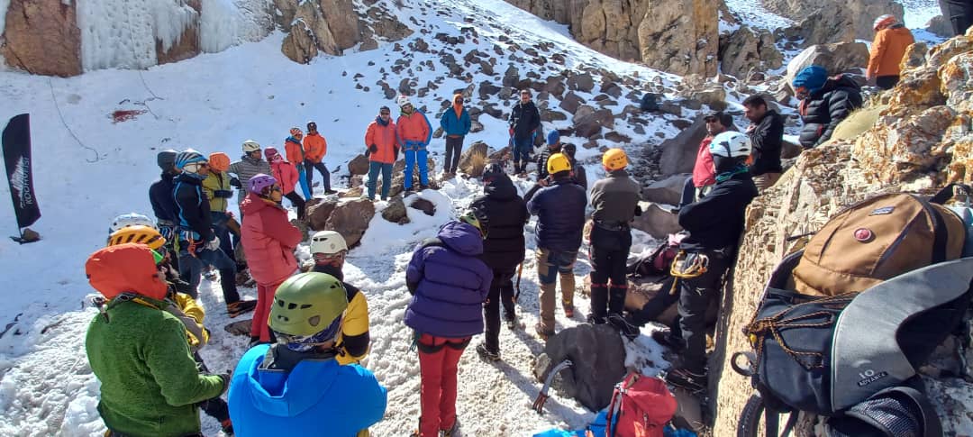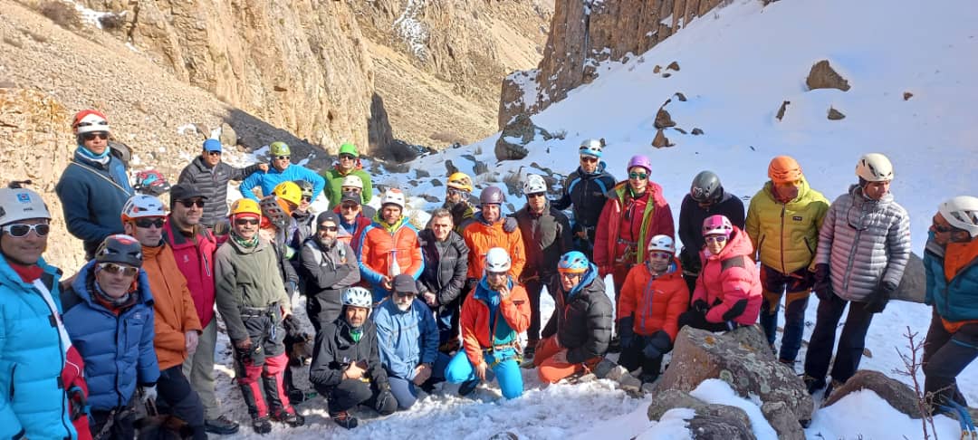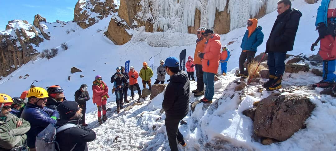 گزارش تصویری / آغاز دوره دانش افزایی مربیان درجه ۱ و ۲ برف و یخ با حضور مربیان فرانسوی در محل آبشار یخی رینه / همراه با بازدید مسئولین فدراسیون