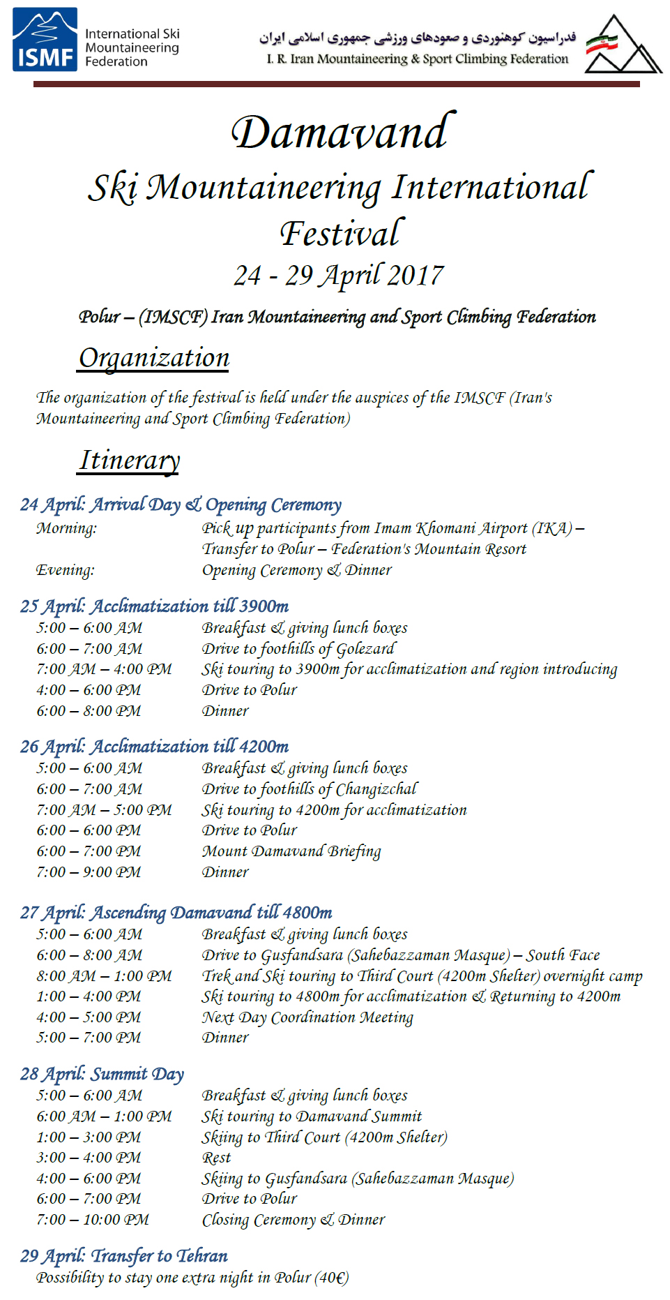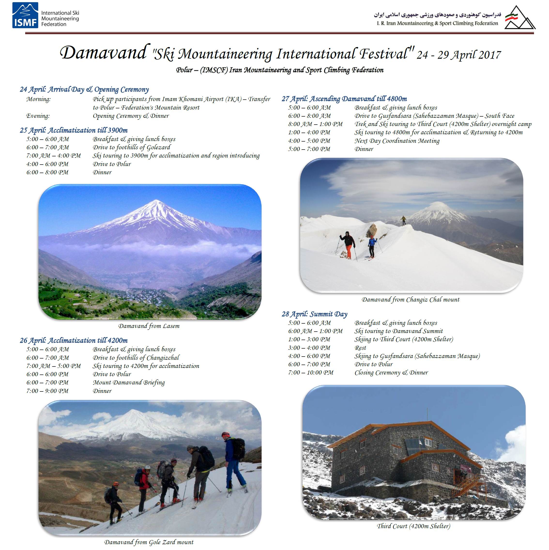 جشنواره بین المللی کوهنوردی با اسکی دماوند از"چهارم الی نهم ارديبهشت" برگزار خواهد شد.