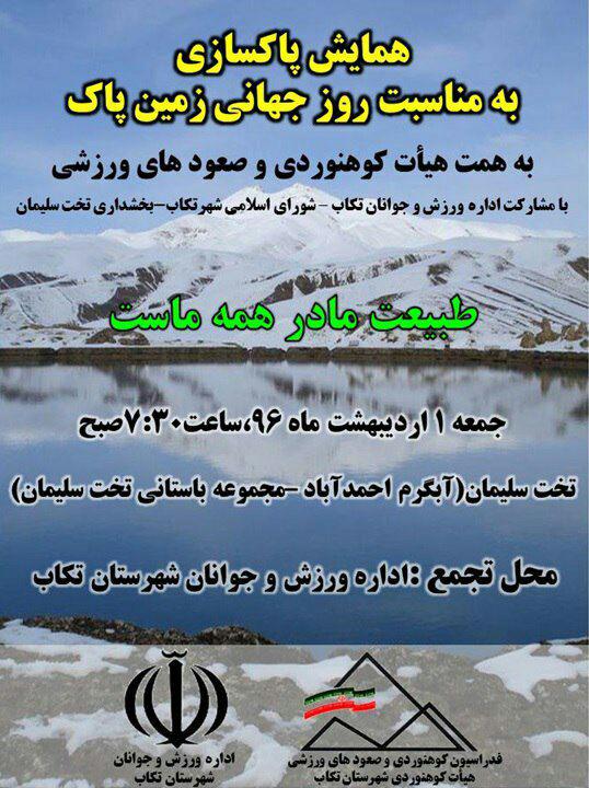 این همایش به همت هیأت کوهنوردی و صعودهای ورزشی شهرستان تکاب و همکاری گروههای کوهنوردی دماوند، پیرساور، دربند، K2، ساربابا، گونش، انجمن خوشنویسان، سنگنوردان، لاچین و بانوان، هیأت شنا و هیأت دوچرخه سواری تکاب و همچنین اداره ورزش و جوانان و شورای اسلامی شهر تکاب، بخشداری تخت سلیمان، دهیاری روستای نصرت آباد و نبی کندی و خانوادههای سروی، رفیعی، ارجمند، مردی، جعفری، ولیپور و حمدی و همنوردانی که در این برنامه بصورت مهمان حضور داشتند به اجرا درآمد.
