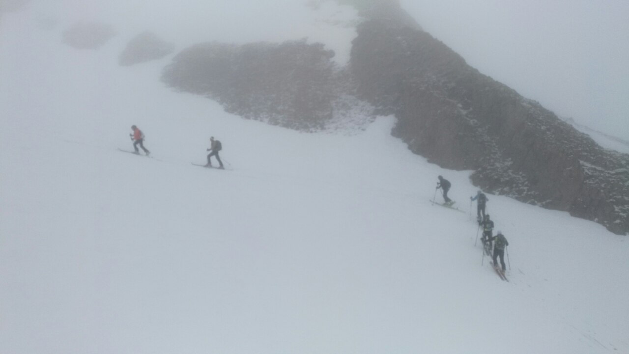 درحالی که تمام طول شب با بارش و باد شدید گذشت، تیم 14 نفره جشنواره بين المللی کوهنوردی با اسکی دماوند از ساعت ۶ صبح در هوای کاملا مه آلود و همراه با رگبارهای کوتاه تگرگ به سمت روستای لاسم حرکت کرد و حدود ساعت ۷:۳۰ از ابتدای مسير کار را شروع کرد. ادامه مسیر در هوای متفاوت بهاری همراه با بارش ها خفیف بود و با عبور از مرز ابرها در ارتفاع ۳۵۰۰ متر بارشها خاتمه يافت. ادامه صعود بر فراز ابرها تا ساعت ۱۱ به صعود و توقف ۱ ساعته بر روی قله آنگمار در ارتفاع ۴۱۰۰متر انجاميد. در نهايت فرود ۱۵۰۰ متری بینظیر بر روی برفی تازه پايان يک صعود دلچسب بود. فردا کلیه نفرات از صبح زود شروع به صعود قله دماوند با اسکی خواهند کرد.