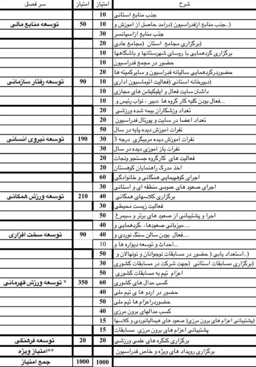 کوهنوردی و صعودهای ورزشی را نیز که براساس آن رتبهبندی استانی صورت میگیرد، در