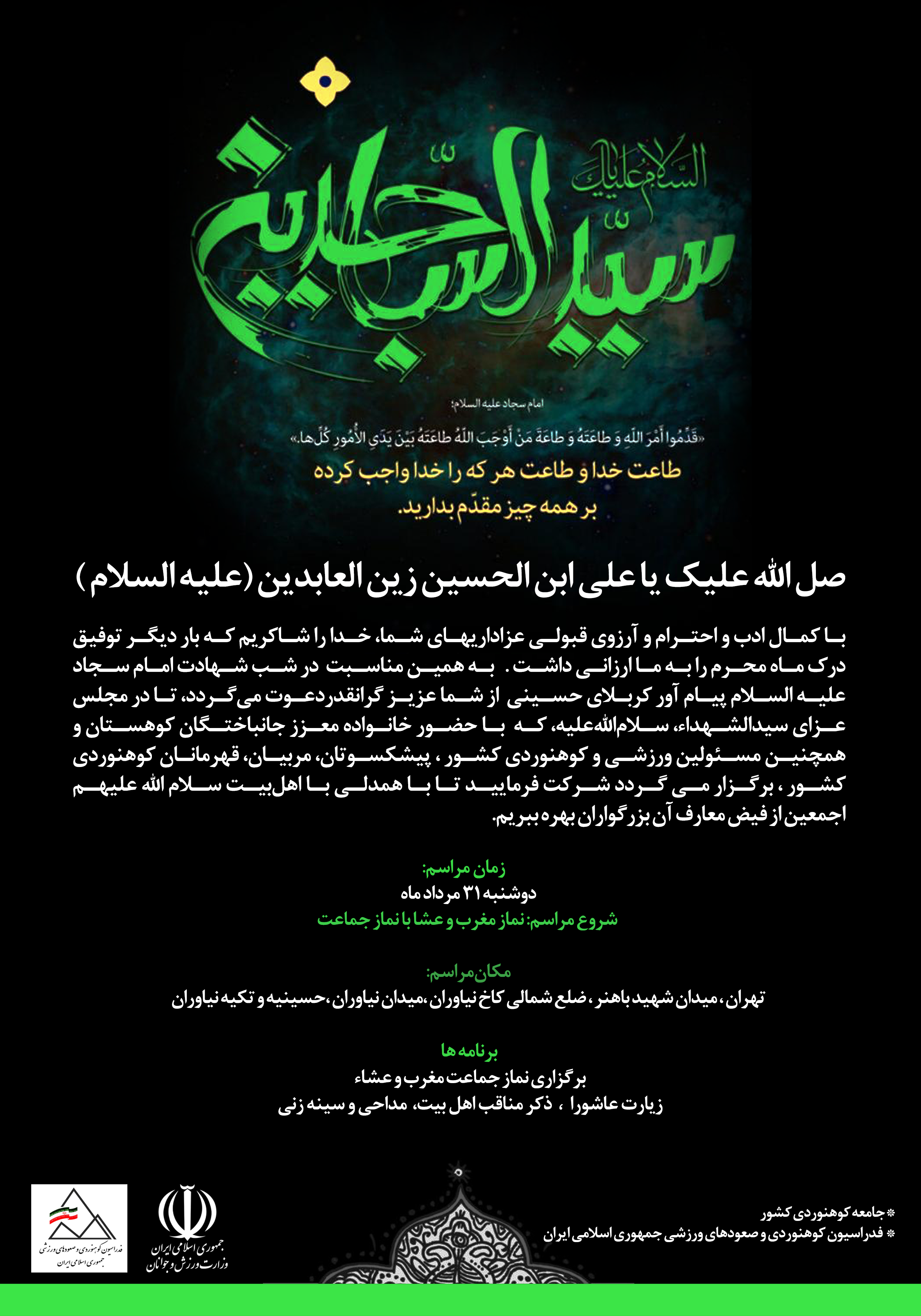 گزارش تصویری / مراسم شب شهادت «سید ساجدین؛ حضرت امام زینالعابدین»(ع) در حسینیه و تکیه «نیاوران» با حضور جمعی از جامعه کوهنوردی، مسئولین و عوامل فدراسیون