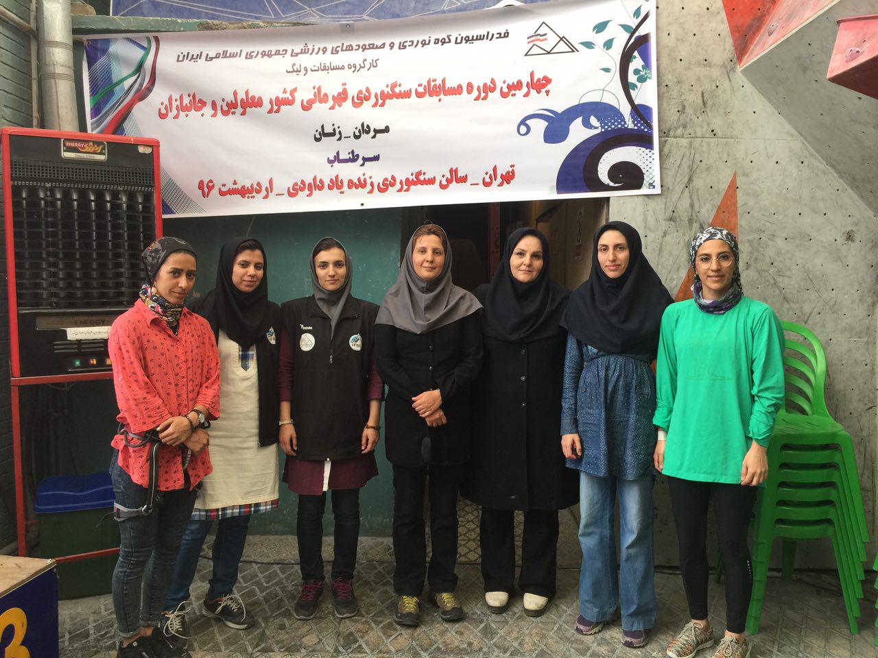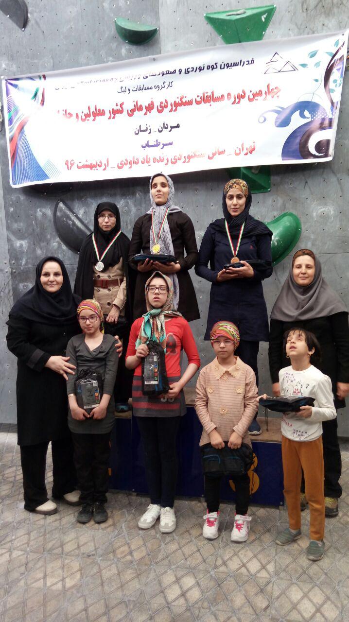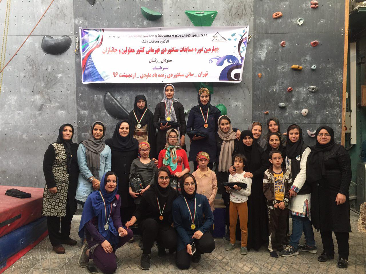 صبح روز دوشنبه 11 اردیبهشت ماه 96 ، چهارمین دوره مسابقات سنگنوردی قهرمانی کشور جانبازان ومعلولین در بخش زنان درمجموعه ورزشی شهید شیرودی سالن سنگنوردی زنده یاد داودی آغاز شد.