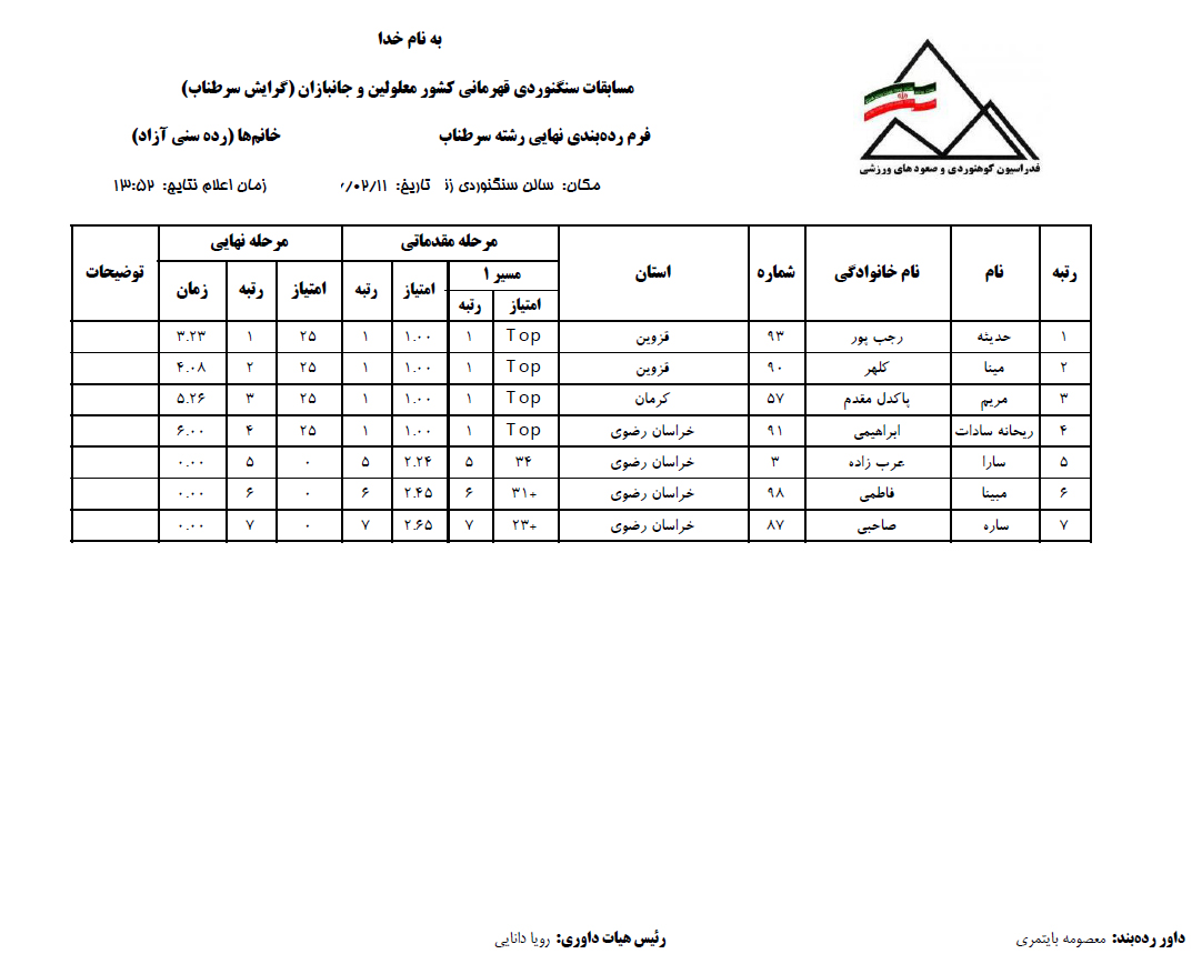 نتایج بخش بانوان را در فایل پیوست ملاحظه نمائید.