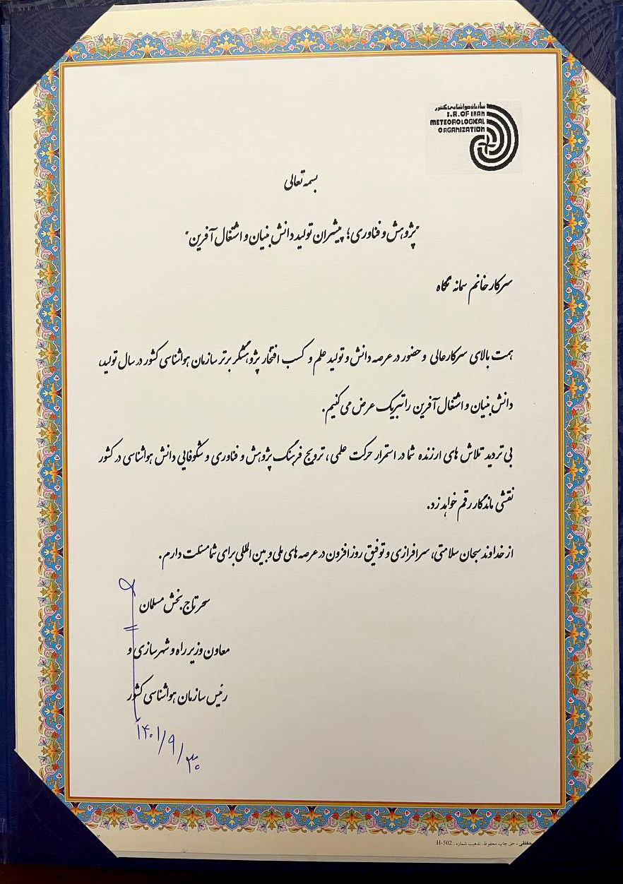 انتخاب مدرسین هواشناسی فدراسیون به عنوان برترین پژوهشگران سال از سوی سازمان هواشناسی