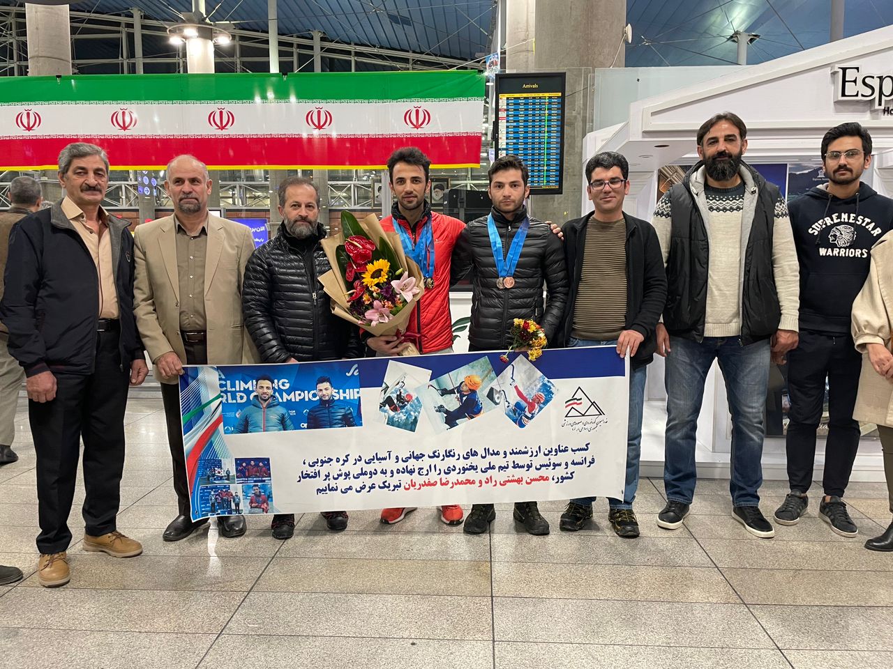 «محسن بهشتی» و «محمدرضا صفدریان» دو‌ قهرمان ارزنده کشورمان بامداد پنج‌شنبه سیزدهم بهمن 1401 در میان استقبال خانواده‌ها، دوستان و‌ مسئولین فدراسیون به کشور بازگشتند.