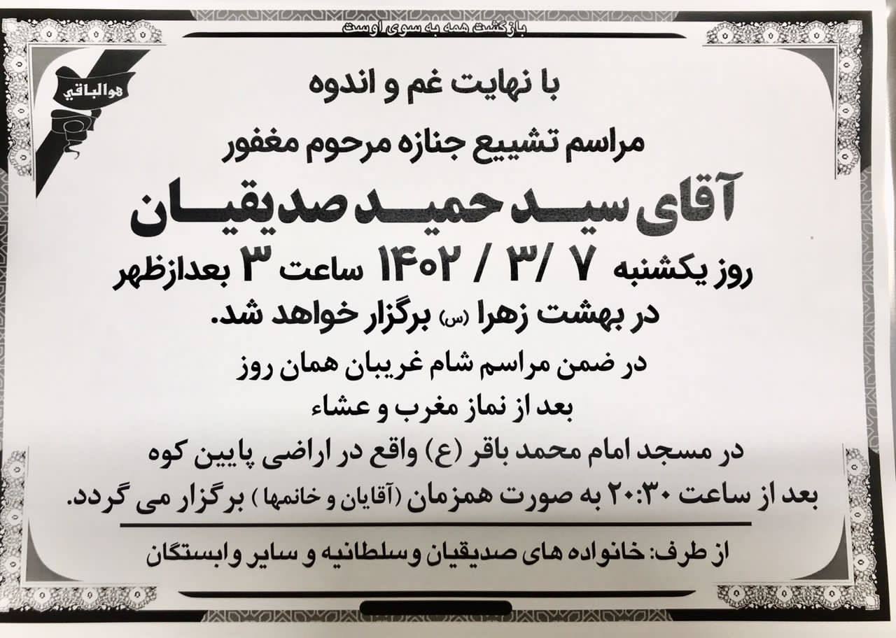 در کمال تأسف و تأثر مطلع شدیم؛ جناب آقای «سید حمید صدیقیان» از مربیان ارجمند و پیشکسوتان کوهنوردی استان «زنجان»، دار فانی را وداع گفتند.